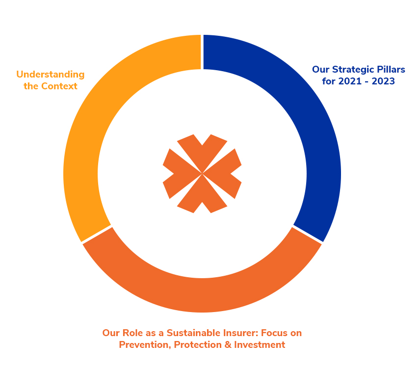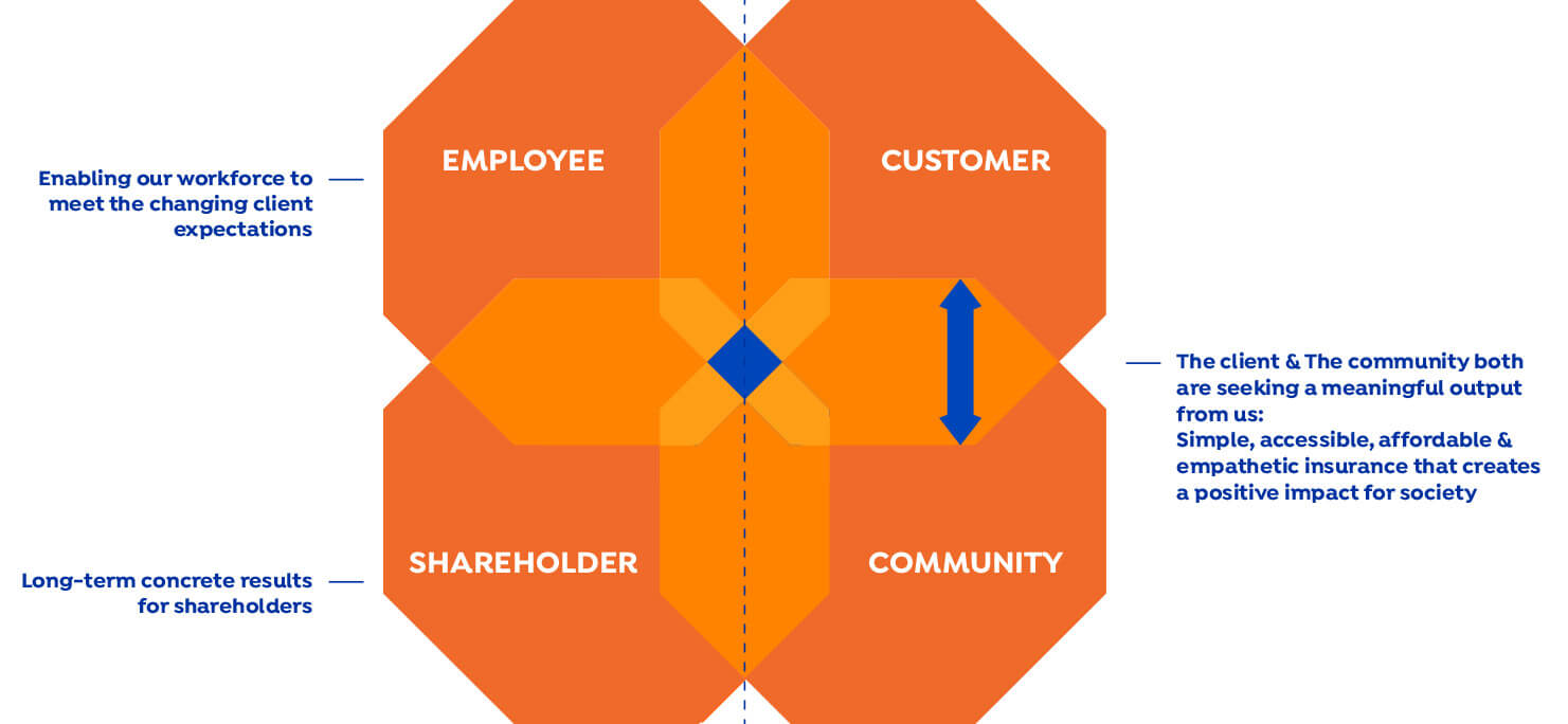 The model is circular as we strongly believe that we need to have a motivated and engaged workforce to be able to have efficient & effective insurance operations that will create a positive experience for our clients while making sure we make a meaningful contribution to the Community.